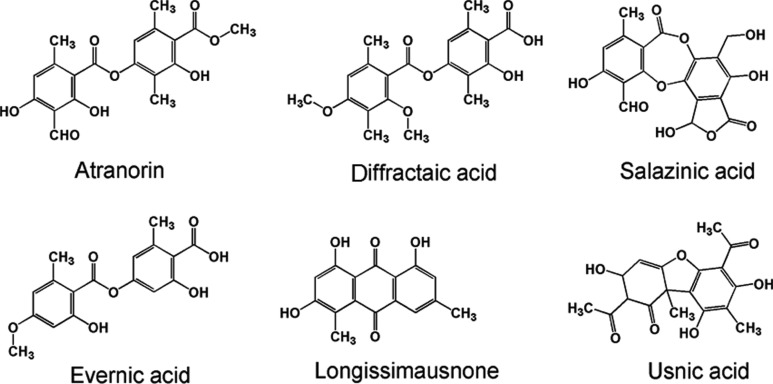 - Usnea contains lichen acids (polyketides), including among others (+)-usnic