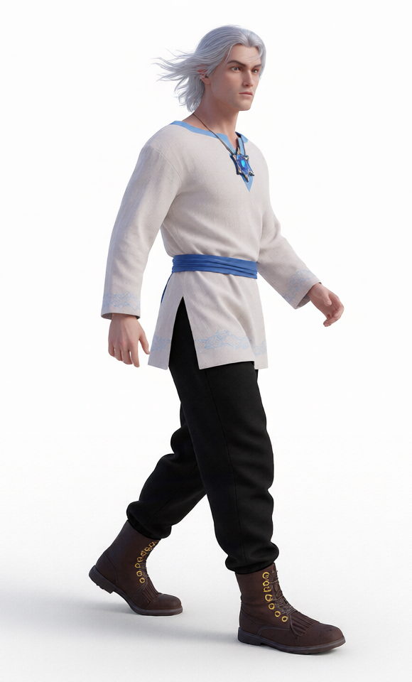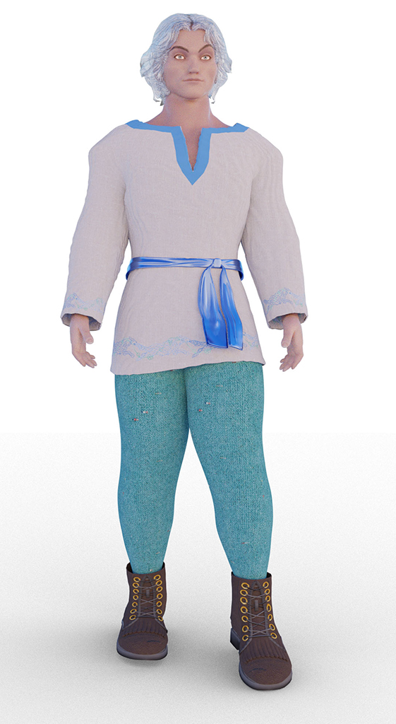 Back to Qwen-image-edit, I changed the color of Eldranth’s pants, put him in a more natural pose (I could have done this with Blender, but it is difficult to create anatomically correct poses in Blender unless you can find a “rigged skeleton” that is exactly what you want), and made the render more photorealistic: