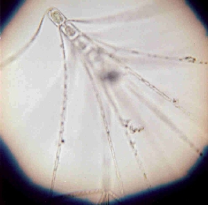 Plantoniella sol, a species of phytoplankton.Alexandrium catenatum, a phytoplankton species responsible for paralytic shellfish poisoning.Chaetoceros concavicornis, a phytoplankton species which causes mortalities in penned salmon.Barnacle larva.Melosira moniliformis, a species of phytoplankton.